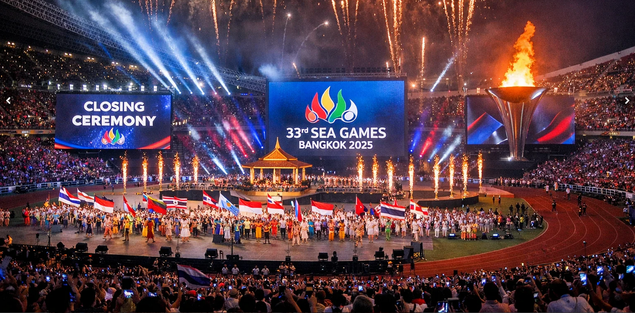 Tối 20/12, tại sân vận động Rajamangala (Bangkok, Thái Lan), Lễ Bế mạc SEA Games 33 đã chính thức khép lại Đại hội Thể thao Đông Nam Á lần thứ 33 bằng không khí trang trọng và giàu cảm xúc. Đại hội đã khép lại bằng những chương trình nghệ thuật sôi động và màn pháo hoa rực rỡ, để lại dấu ấn khó quên với khán giả khu vực.