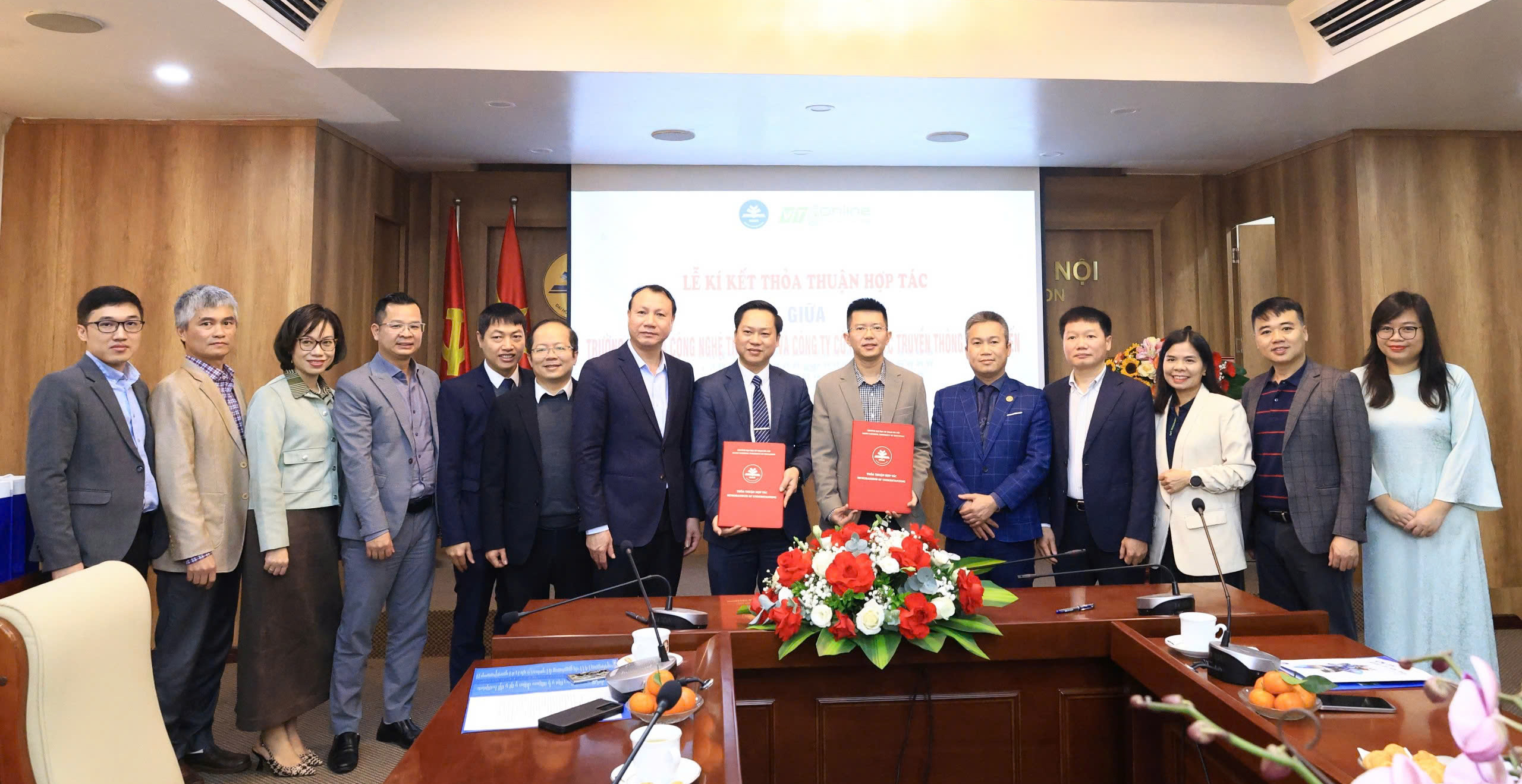 Ban giám hiệu trường đại học sư phạm Hà Nội cùng Ban lãnh đạo VTC Online trong buổi ký kết hợp tác chiến lược