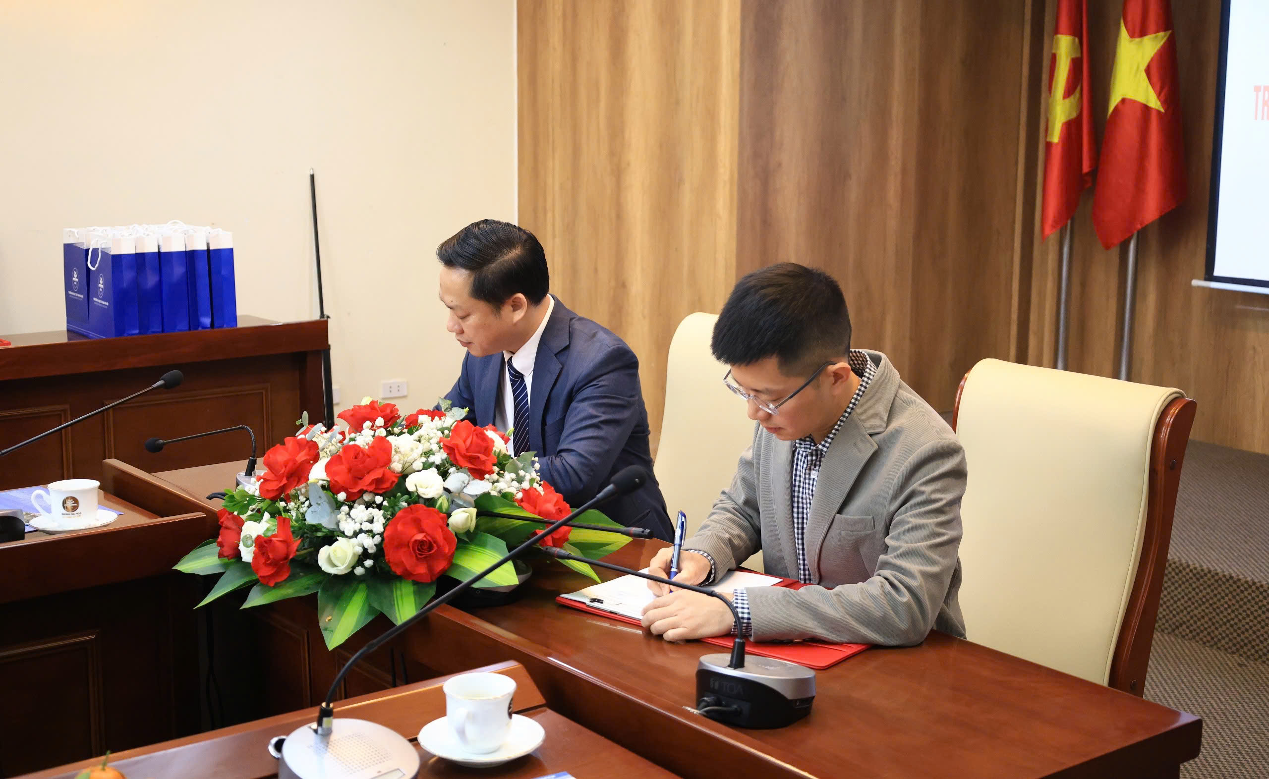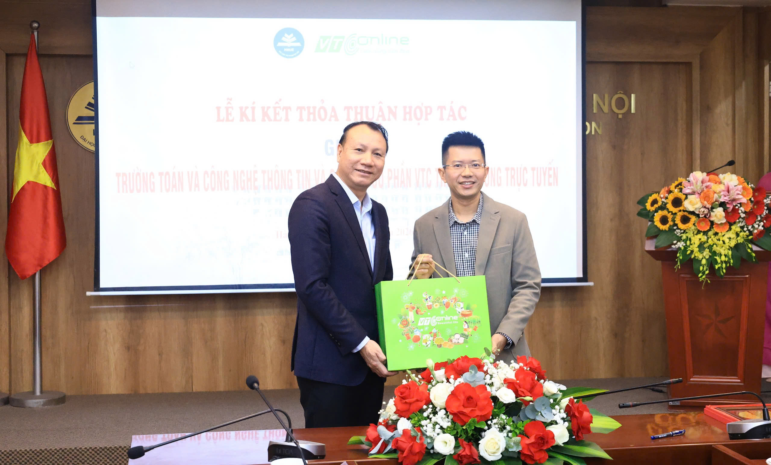 PGS. TS Nguyễn Đức Sơn - Hiệu trưởng trường Đại học Sư phạm Hà Nội cùng ông Lê Việt Hòa - Giám đốc VTC Online.