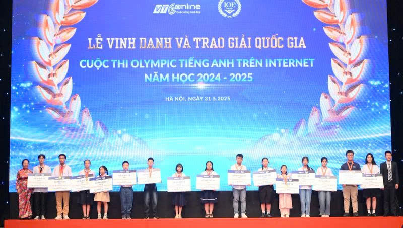 Ngày 31/5/2025, tại Trung tâm Hội nghị Quốc gia Việt Nam, Hà Nội, Lễ Vinh danh và Trao giải Quốc gia Cuộc thi Olympic tiếng Anh trên Internet (IOE) năm học 2024-2025 đã được tổ chức trang trọng, đánh dấu một chặng đường đầy ý nghĩa và thành công rực rỡ của hành trình 15 năm lan tỏa phong trào học tiếng Anh trực tuyến trong cộng đồng giáo dục Việt Nam.