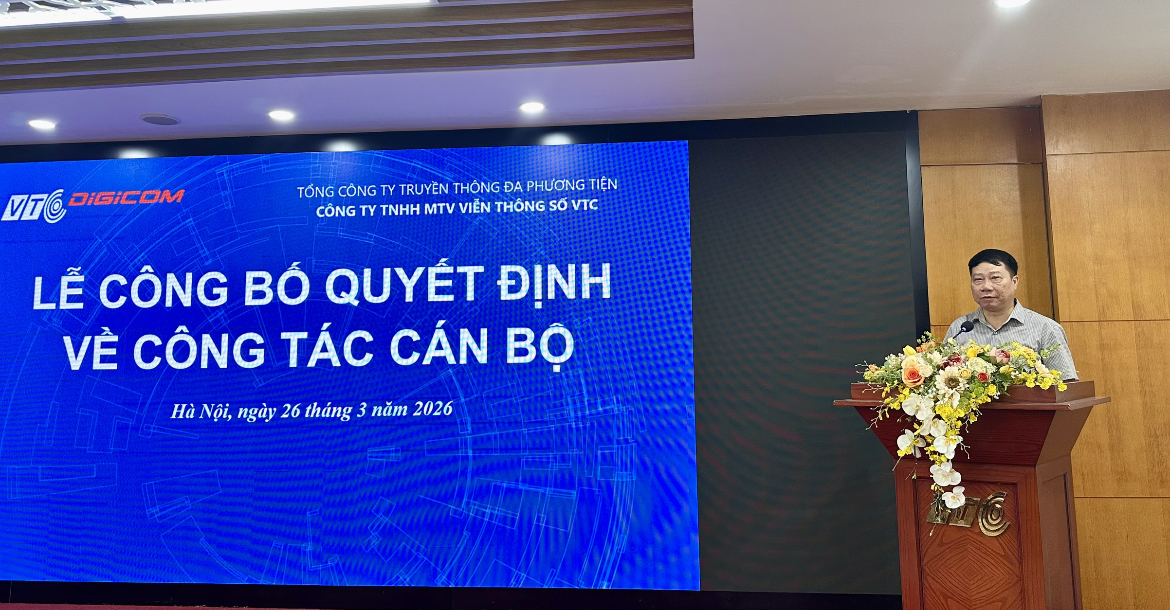 Chiều ngày 26/03, tại trụ sở Công ty (tầng 2, tòa nhà VTC, 65 Lạc Trung), Công ty TNHH MTV Viễn thông Số VTC (VTC Digicom) đã trang trọng tổ chức lễ công bố quyết định bổ nhiệm Ban lãnh đạo mới, với sự tham dự của toàn thể lãnh đạo Công ty và đại diện Lãnh đạo Tổng Công ty Truyền thông đa phương tiện (VTC).