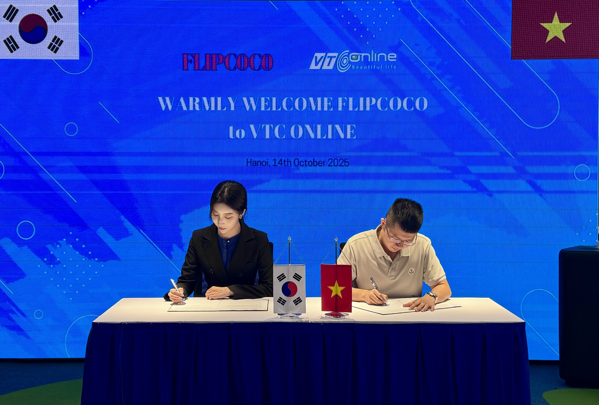 Ngày 14/10/2025, tại văn phòng tầng 12 – trụ sở VTC Online, lễ ký kết Biên bản ghi nhớ hợp tác (MOU) giữa VTC Online và Flipcoco đã diễn ra thành công tốt đẹp.