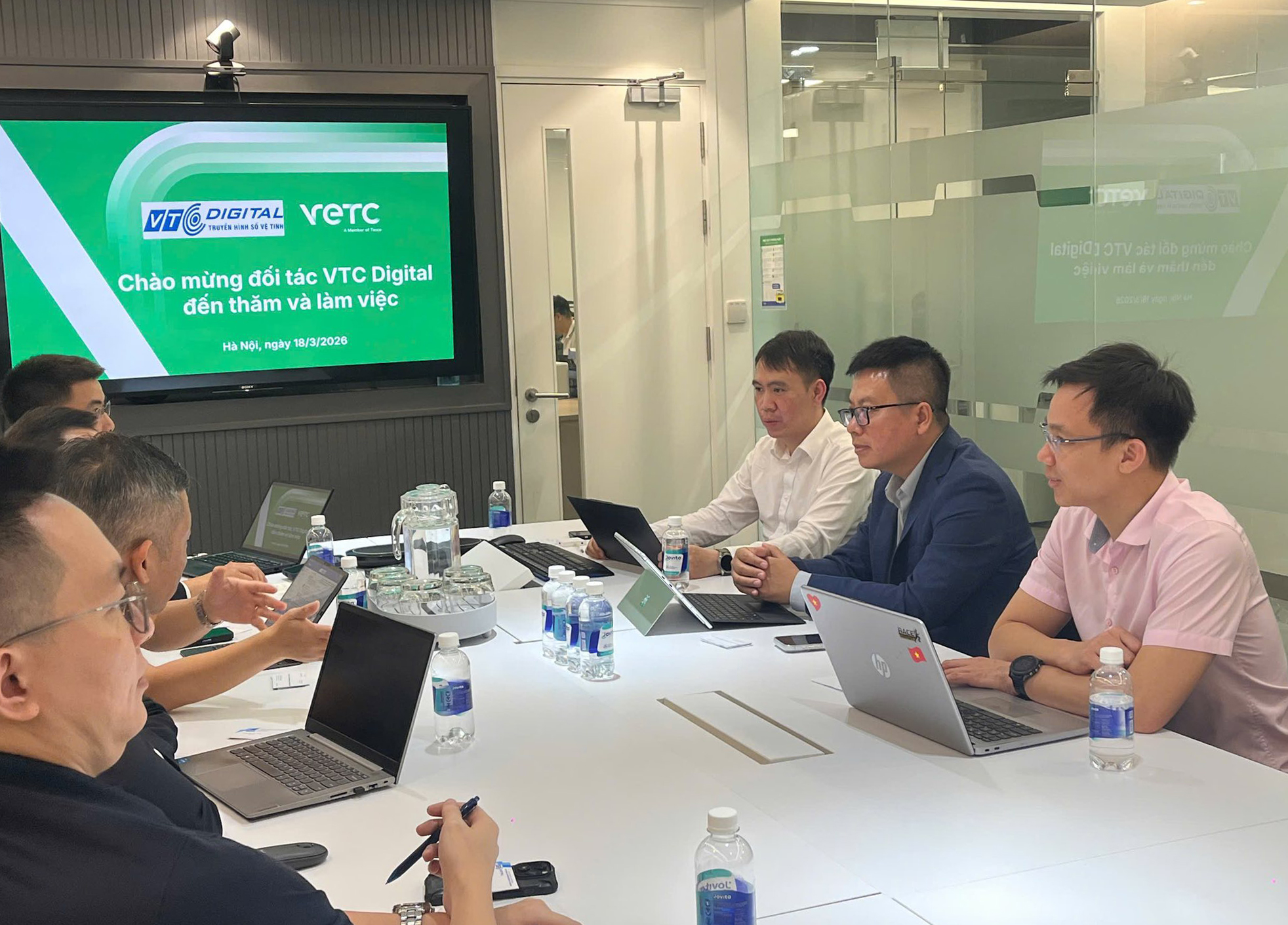 Chiều ngày 18/3/2026, tại văn phòng Công ty TNHH Thu phí tự động VETC, đại diện VTC Digital và VETC đã có buổi làm việc nhằm trao đổi về định hướng phát triển, tầm nhìn chiến lược, đồng thời giới thiệu các sản phẩm, dịch vụ và thảo luận cơ hội hợp tác giữa hai đơn vị trong thời gian tới.